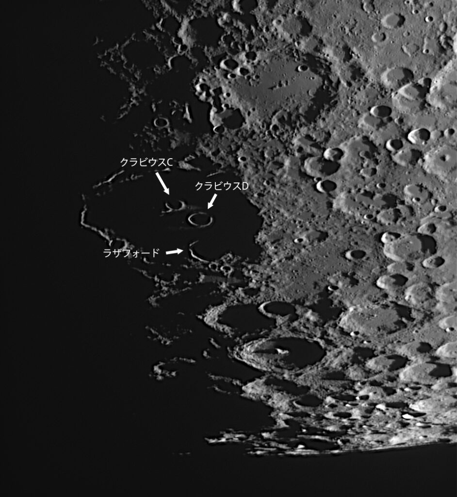 クラビウスDはすぐにリング状に光るのですが、クラビウスCは北側がなかなかつながらず、東側に底面が光り出してしまうのが残念です。