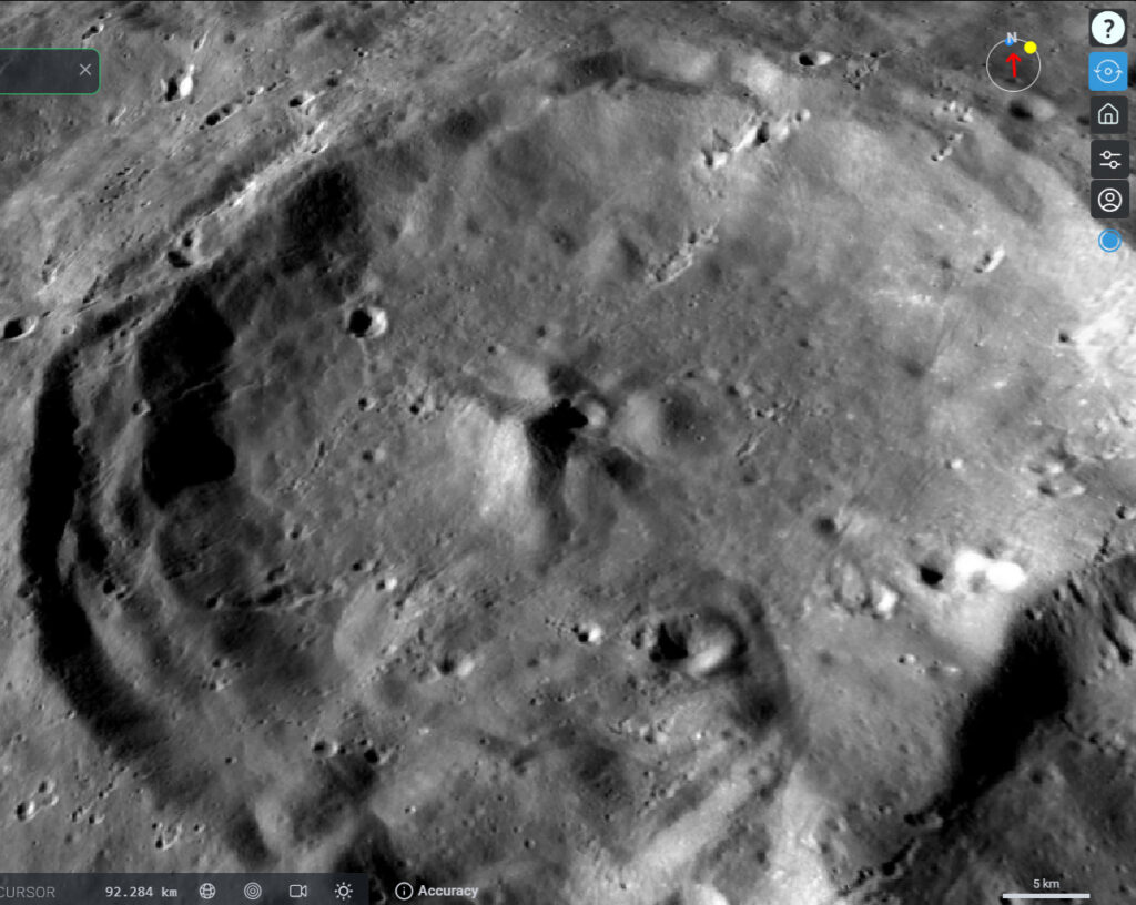 ずいぶん小さなXですが、LROCで見るとXの大きさは10kmくらいでしょうか。