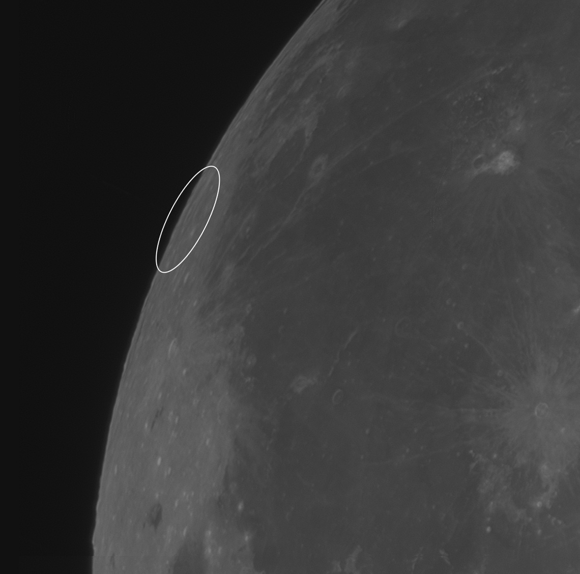 月食の進行とともにアインシュタイン付近も暗くなるのですが、今回はこの付近から欠け始めたので部分食が始まる頃には影になってしまいました。