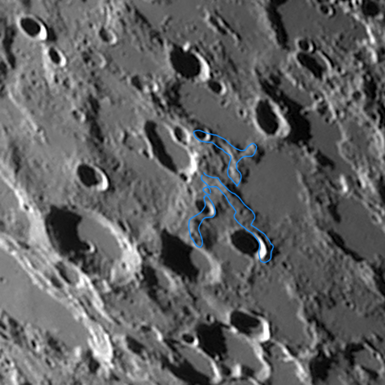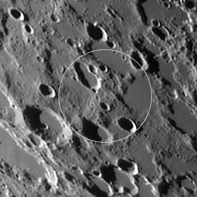 ロンゴモンタヌスとシラーの中間あたりですが、近くに目立つクレーターはありません。