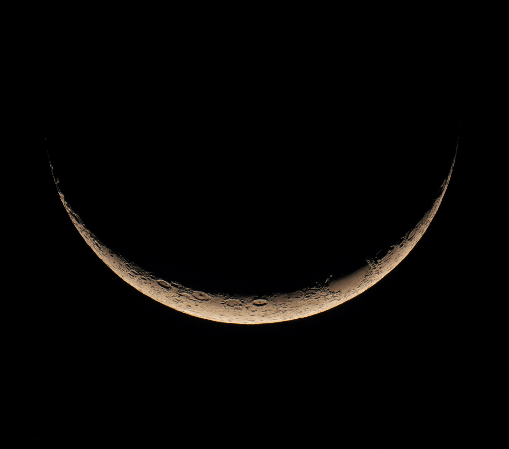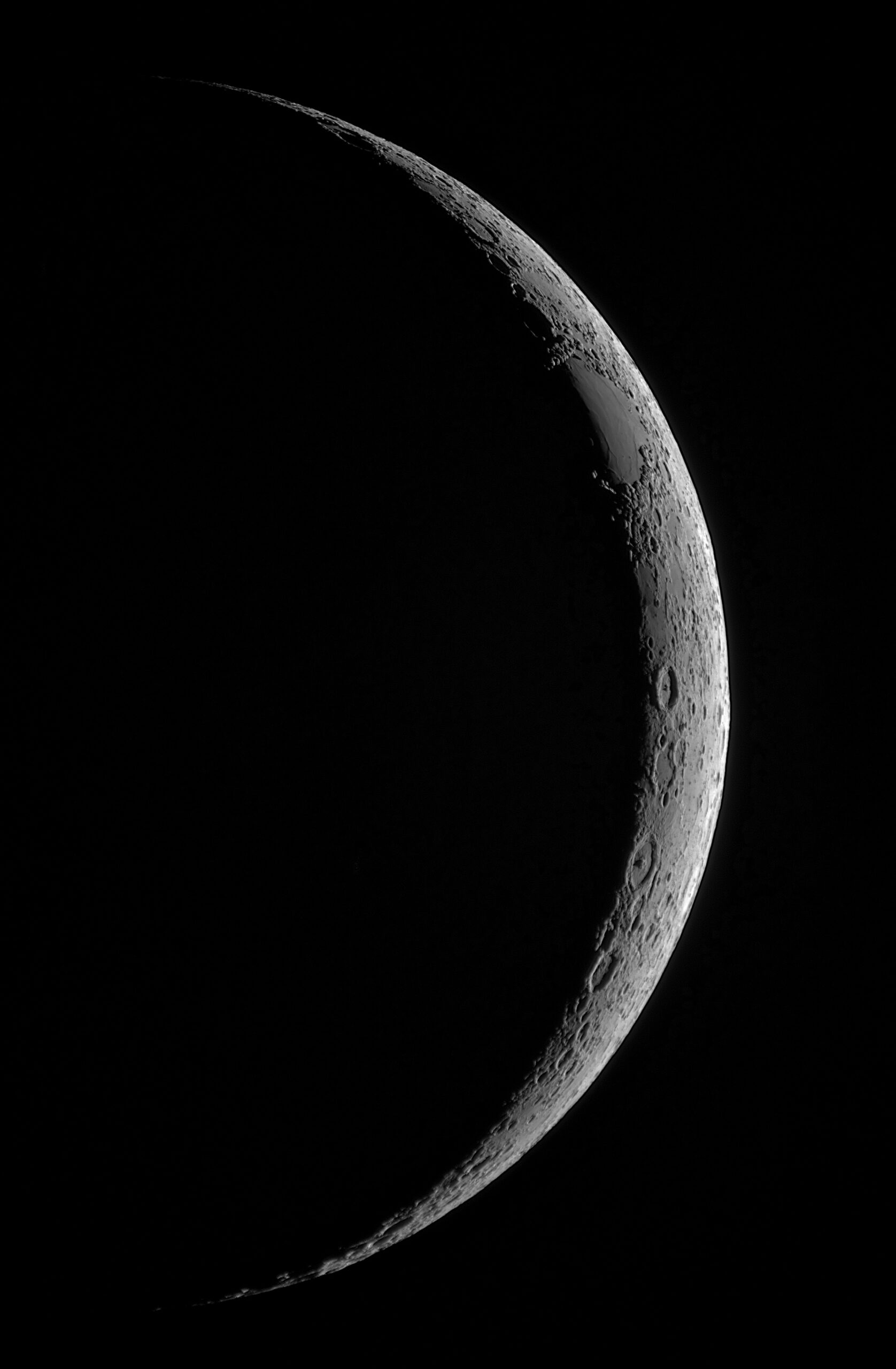 昨日(3/20)に続き、天気が良かったので月齢2.4の細い月も撮影しました。