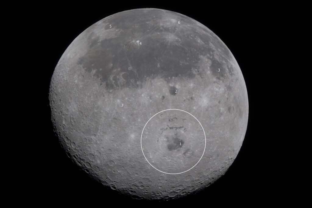 前回の「アルテミスI」の時もそうでしたが、月の裏側が写ってもどのあたりなのかさっぱりわかりません。そんな時に唯一の目印になるのがオリエンタレ・ベイスン(東の海)かと思います。今回も中継では宇宙船からの少し不鮮明な映像がずっと流れていましたが、東の海はすぐにわかりました。